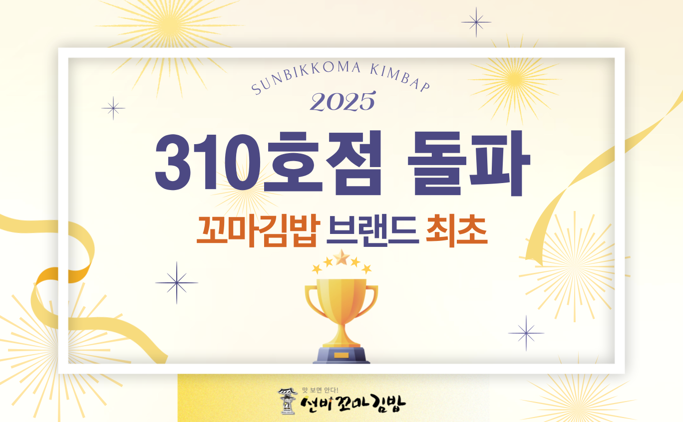 프리미엄 꼬마김밥 프랜차이즈 선비꼬마김밥이 최근 310호점 돌파를 기록했다. 꼬마김밥 브랜드 가운데에서는 최초로 이 지점을 넘기며, 전국 단위의 가맹점 성장이 가속화되고 있다.